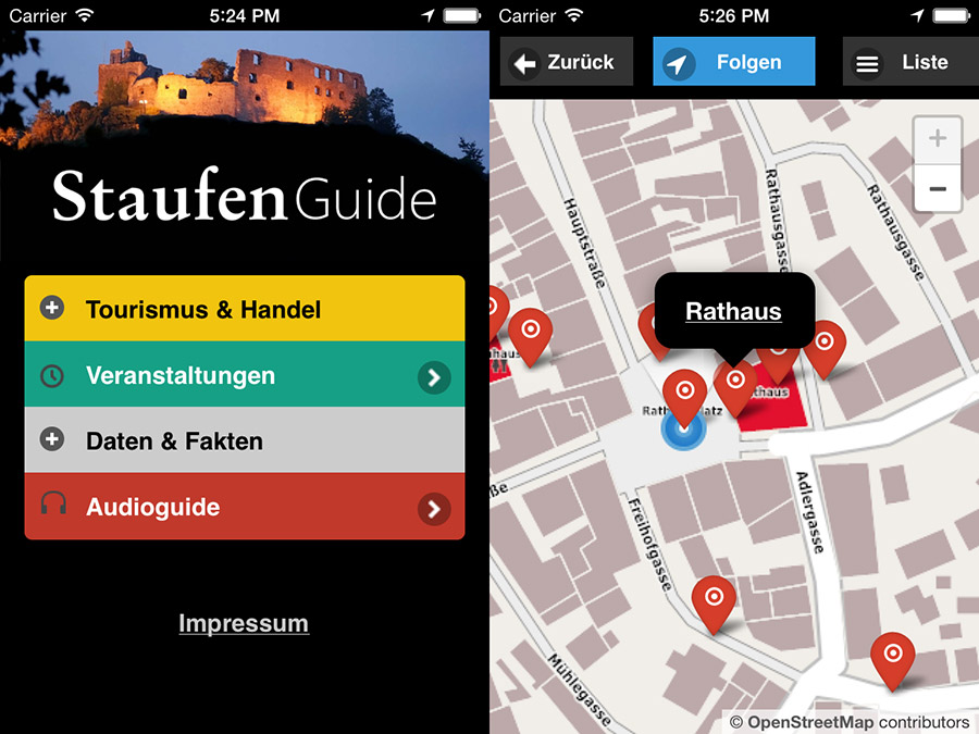 Programmierung einer App mit interaktivem Stadtplan, Veranstaltungskalender und Audioguide.